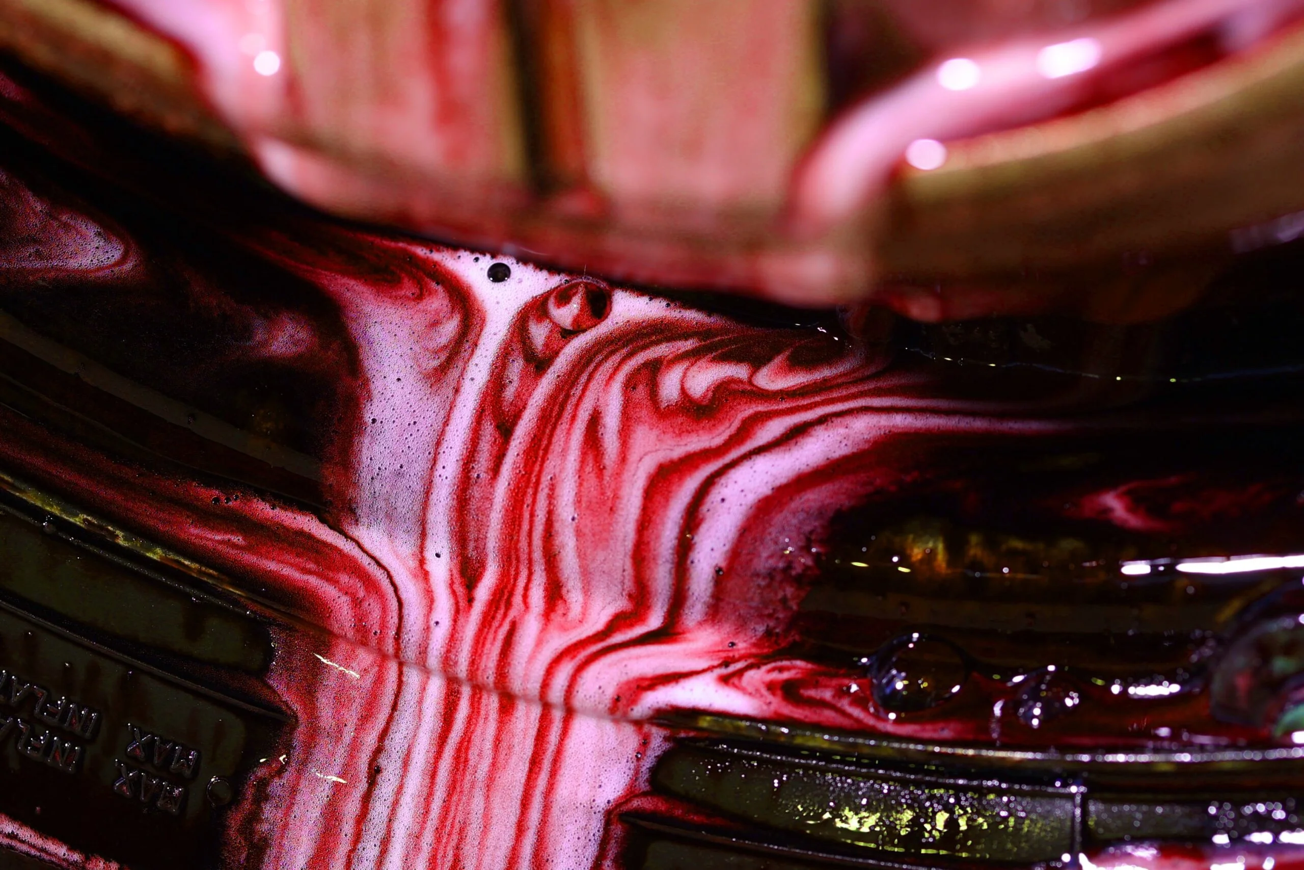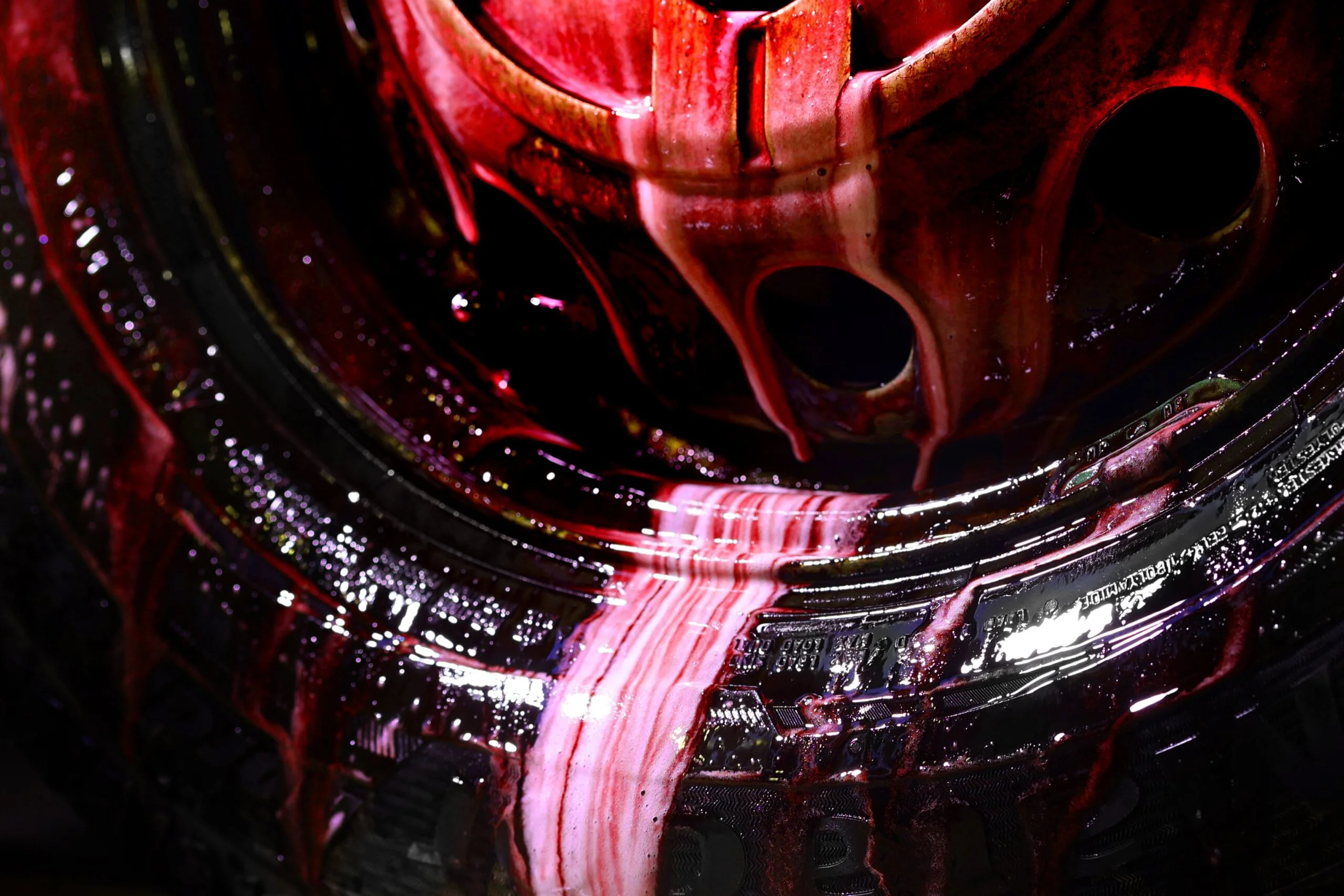 Efekt Krwawej Felgi (Bleeding Effect): Spektakularna zmiana koloru na krwistoczerwony, która wizualnie potwierdza, że produkt wniknął w osady metaliczne i rozpoczął ich rozpuszczanie.