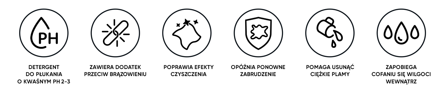 Neutralizacja + kapsułkowanie Przywraca optymalne pH (5.5–6.5), neutralizuje resztki alkaliów i jednocześnie kapsułkuje pozostałe zabrudzenia, zapobiegając ich ponownemu osadzaniu.