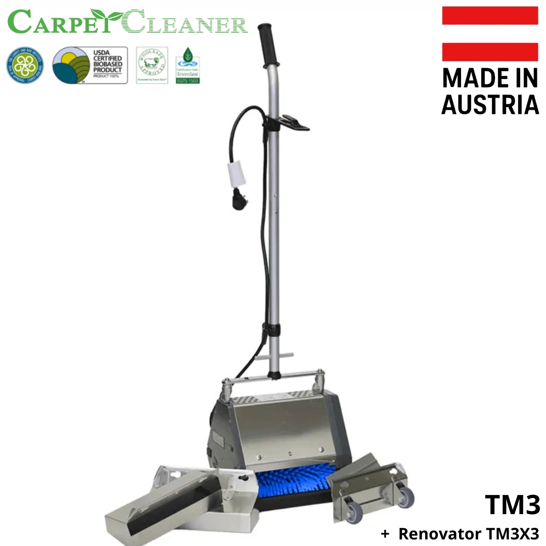 • Niezastąpiona w VLM i Enkapsulacji: Po wypraniu dywanu metodą enkapsulacji (np. płynem Hydro202), brud zamyka się w kryształkach. Zamiast czekać na odkurzanie, wjeżdżasz TM3 z Renovatorami i natychmiastowo zbierasz skrystalizowany brud z dywanu.